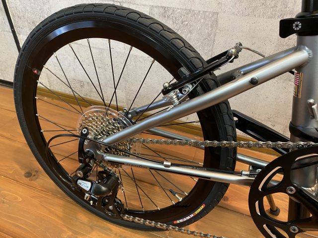シャープなフレームデザインと20″(451)ホイールで伸びのある走りで