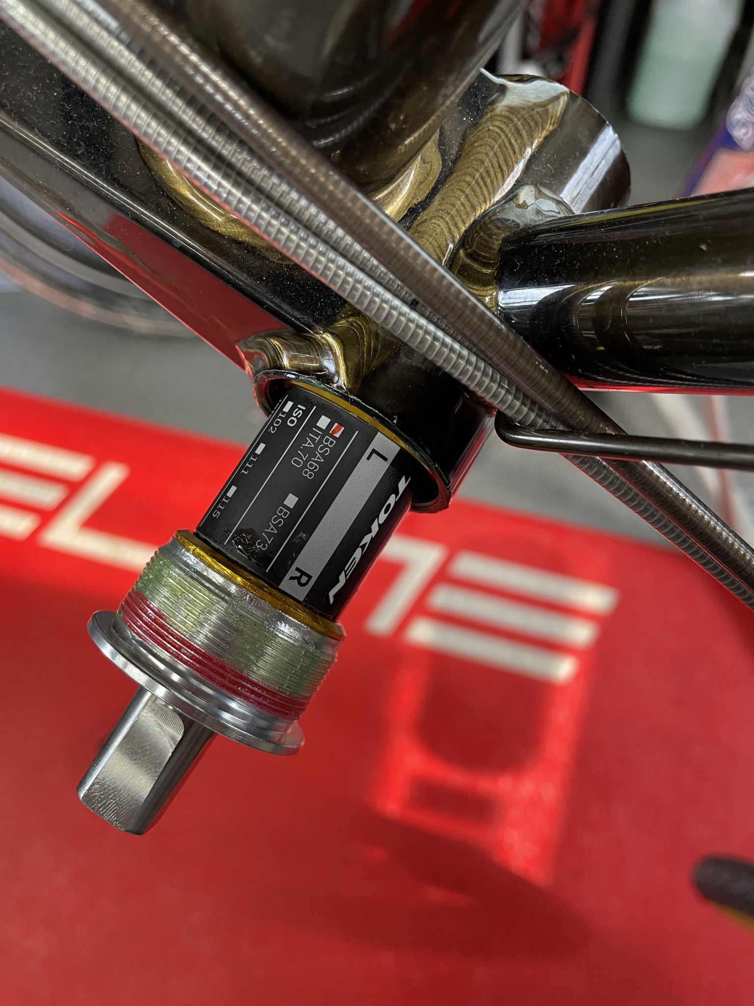 クランク交換に際し、TOKENボトムブラケット(BB)にアップデートも。